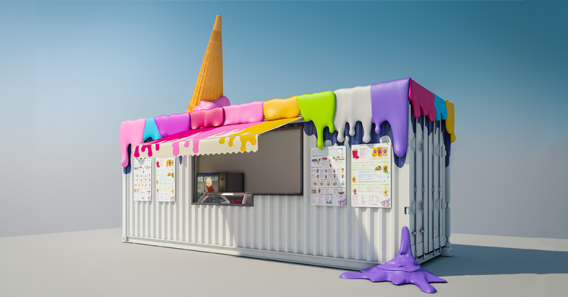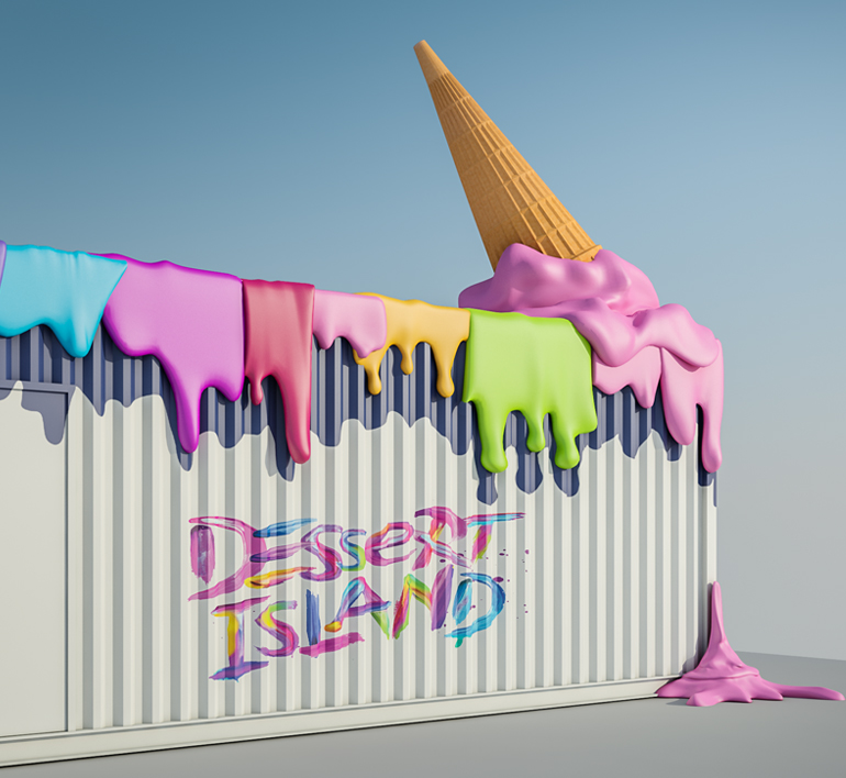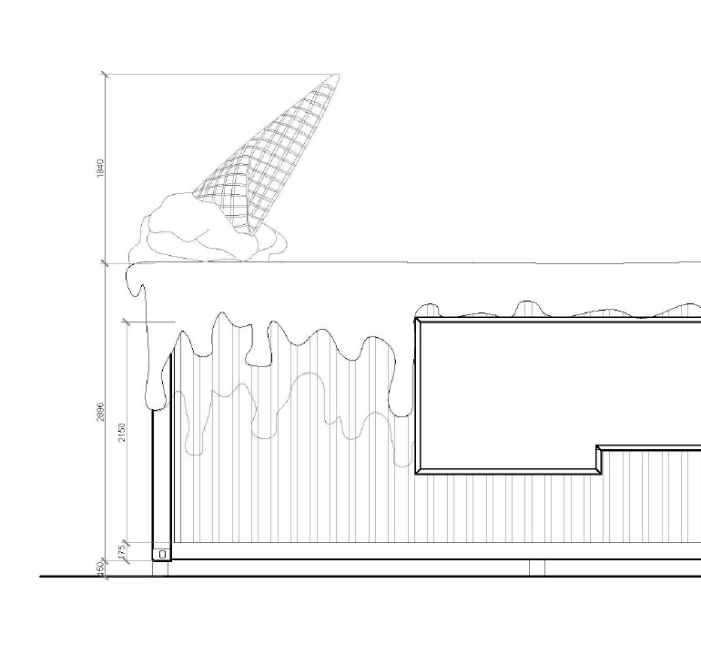 We have generated the idea to create a melted ice cream cone on top of the shop at the last exit Dubai area on the way to Abu Dhabi.